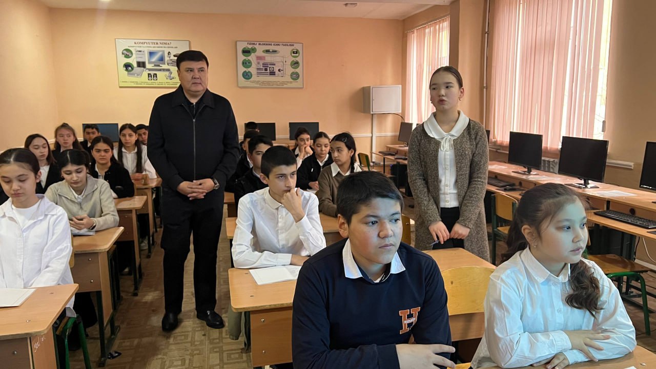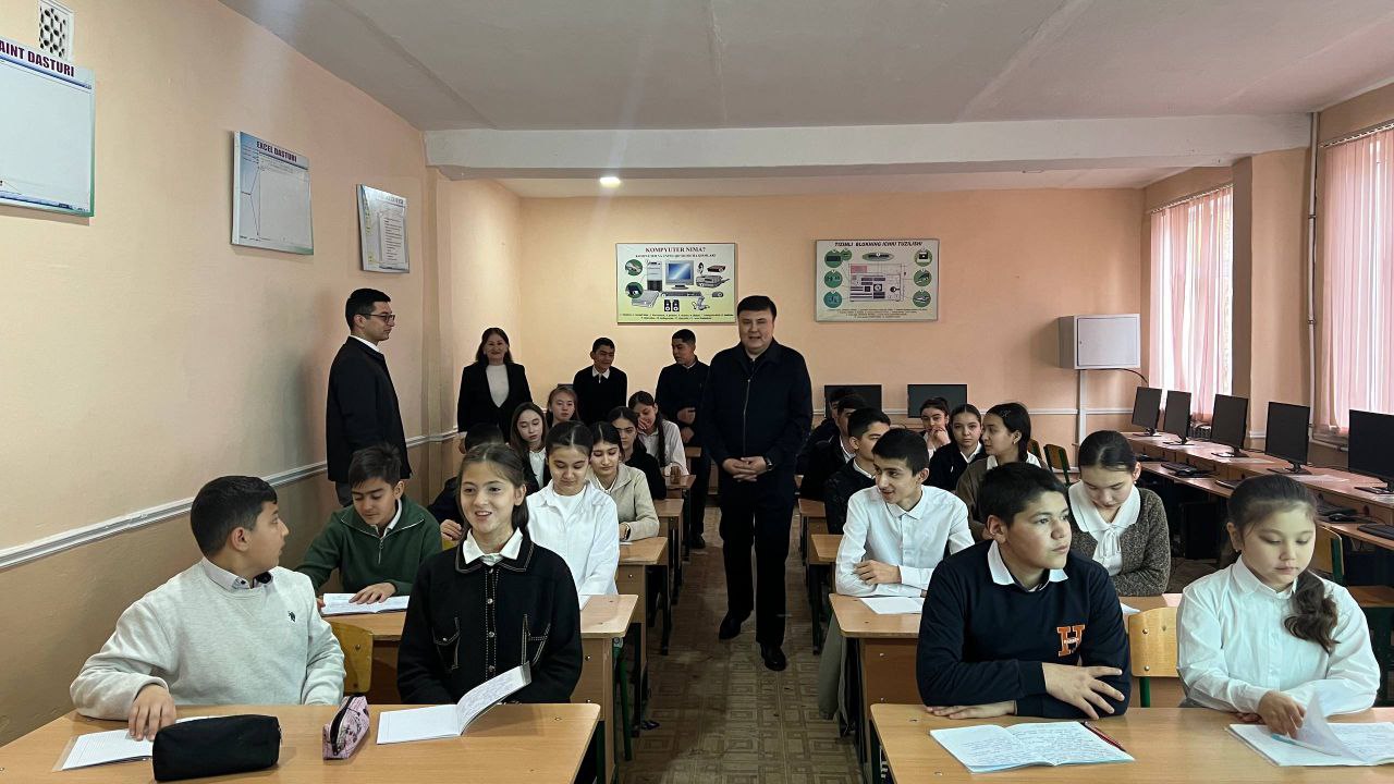Samarqand shahar maktabgacha va maktab ta’limi bo'limi boshlig‘i Z.Nuriddinov 18-umumta’lim  maktabida "Kelajak soati" darsini o‘tdi.