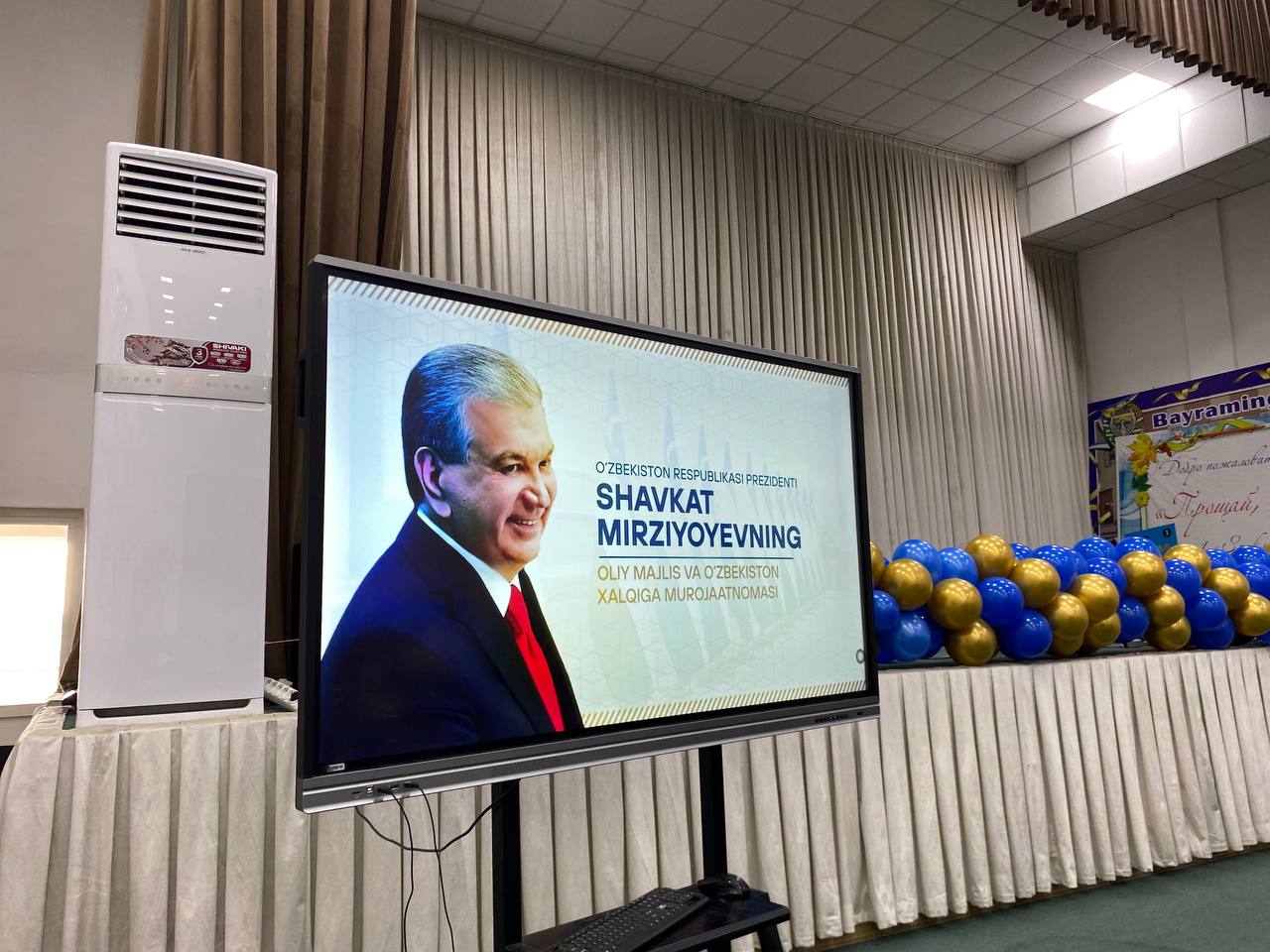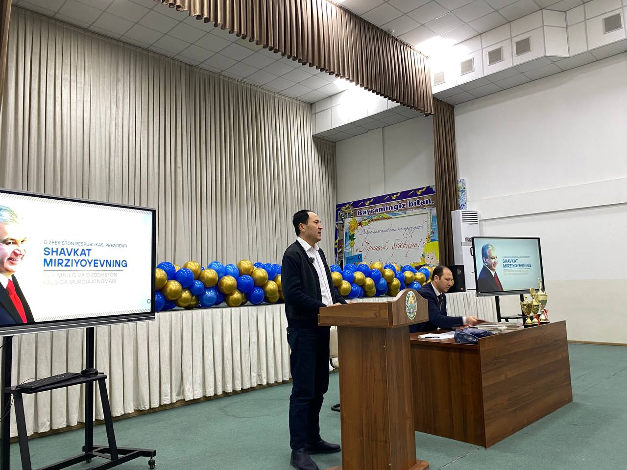 Ushbu murojaatnomada keltirilgan islohotlarning real natijalari, o'zgarishlarning hayotimizdagi aksi va kelgusidagi ustivor vazifalar aniq fakt raqamlarda targ'ibot qilish maqsadida Samarqand shahar Maktabgacha va maktab ta'limi bo'limidan biriktirilgan vakil A.Sindarov hamda maktab direktori O.Ochilovlar tomonidan slaydlar asosida tushuntirib berdilar.