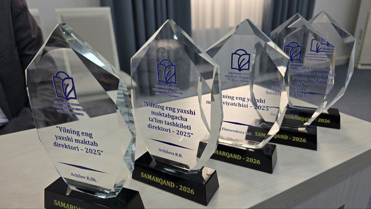 Mukofotlarni Samarqand viloyati Maktabgacha va maktab ta’limi boshqarmasi boshlig‘i M. Hamdamov tantanali ravishda topshirdi.