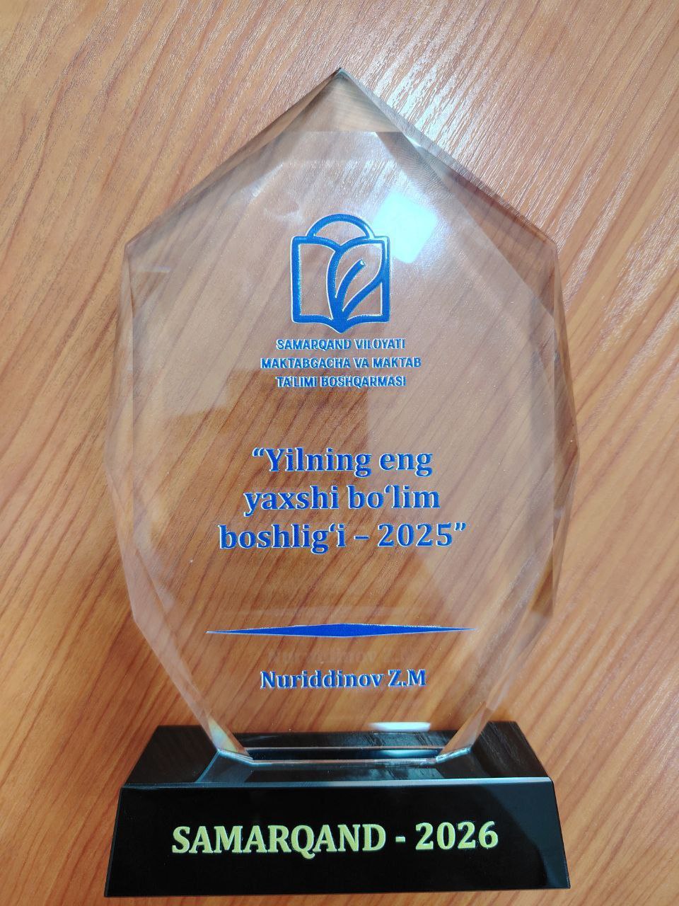 Samarqand viloyati Maktabgacha va maktab ta’limi boshqarmasi tomonidan o‘tkazilgan hay’at yig‘ilishi davomida ta’lim sohasida yuqori natijalarga erishgan rahbar va xodimlar 2025 yil nominatsiyalari bo‘yicha taqdirlandi.