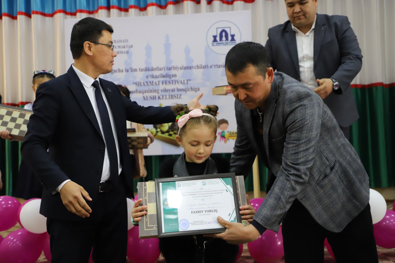 Samarqand shahridagi 20-umumta’lim maktabida Maktabgacha va maktab ta’limi vazirligi tashabbusi bilan tashkil etilgan maktabgacha ta’lim tashkilotlari tayyorlov guruhi tarbiyalanuvchilari o‘rtasida shaxmat festivalining viloyat bosqichi bo‘lib o‘tdi.